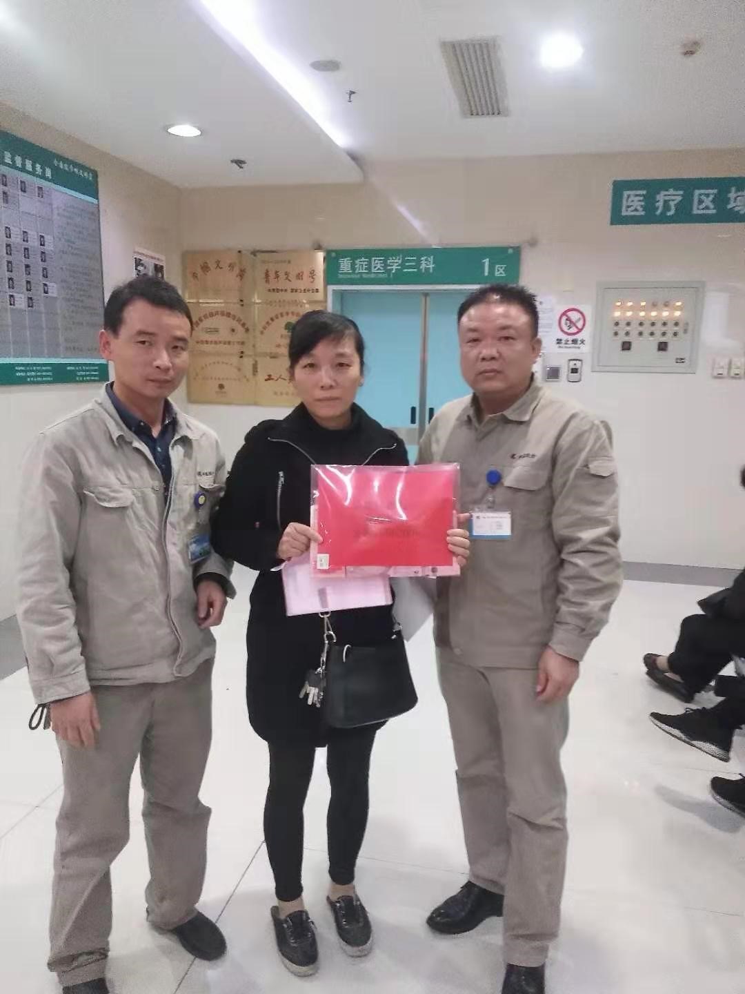 2019年12月5日凌晨,五金公司一車間員工林秀清的兒子(年僅24歲)不幸從家中七樓踩空摔下當場昏迷不醒,經搶救,確診為少量出血,顱骨骨折,肋骨斷裂,大腿骨折。12月5日早上6點其兒子突然心跳加快不能自主呼吸檢查后做了開顱手術,經過5個多小時手術,術后住進重癥監護室,醫生也下達病危通知書。重癥監護室每天費用至少1萬以上,治療費用是一個很大的窟窿。股份公公司工會在知道這個情況后,馬上從工會困難員工幫扶基金撥付了專項救濟金,并向上級工會申請了臨時困難救助,同時在公司東臺廠區、尚干廠區發起了捐款倡議,為林秀清的孩子捐款,捐款總共募集56200的捐款,悉數送到林秀清的手中,幫助其解了燃眉之急。